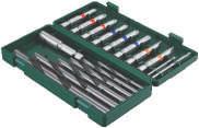 • In cluye a l argador de punt a , 8 punt a s de ator nil l ar y 8 bro c a s HSS en un pr ác tic o ma letí n