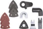 1 accesorio de par de apriete, 1 excéntrico, 1 angular y 1 de corte.