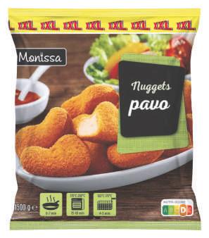 Med allón de pechuga de pollo marinado Aprox. 550 g (6 , 85 €/kg / 5 , 9 8 €/kg) Butifarra de payés con pimienta 700 g (6 ,41 €/kg / 5 , 5 6 €/kg) -13% 4.49 3.89 /700 g Oferta válida del 17/8 al 20/8 700 g Pechuga de pollo • Cor te f i n o Aprox. 500 g (8 , 89 €/kg / 6 , 70 €/kg) Pechuga de pavo filetead a al ajillo Aprox. 950 g (9,15 €/kg / 7, 9 8 €/kg) M onis s a® Nuggets de pavo 1,5 kg (8 ,- €/kg / 4,6 6 €/kg) -41% 12.6.99 /ud POR TIEMPO LIMITADO 1,5 kg M onis s a® Alita s de pollo • 2 var ie d ades: cl á s ic a s o pic antes . 1 kg (6 , 8 6 €/kg / 4, 89 €/kg) -28% 6.86 4.89 /ud POR TIEMPO LIMITADO 1 kg -12% 3.77 3.29/aprox. 550 g Oferta válida del 17/8 al 20/8 Aprox. 550 g -12% 8.69 7.59/aprox. 950 g POR TIEMPO LIMITADO Aprox. 950 g ¡Rápida s y fáciles de preparar! -24% 4.45 3.35/aprox. 500 g Oferta válida del 17/8 al 20/8 Aprox. 500 g Delicia s congelada s El kg sale a 8.89 € 6.70 € F · C/BAL/CEU/ML · 33/2023 4 Desde el jueves 17 de agosto