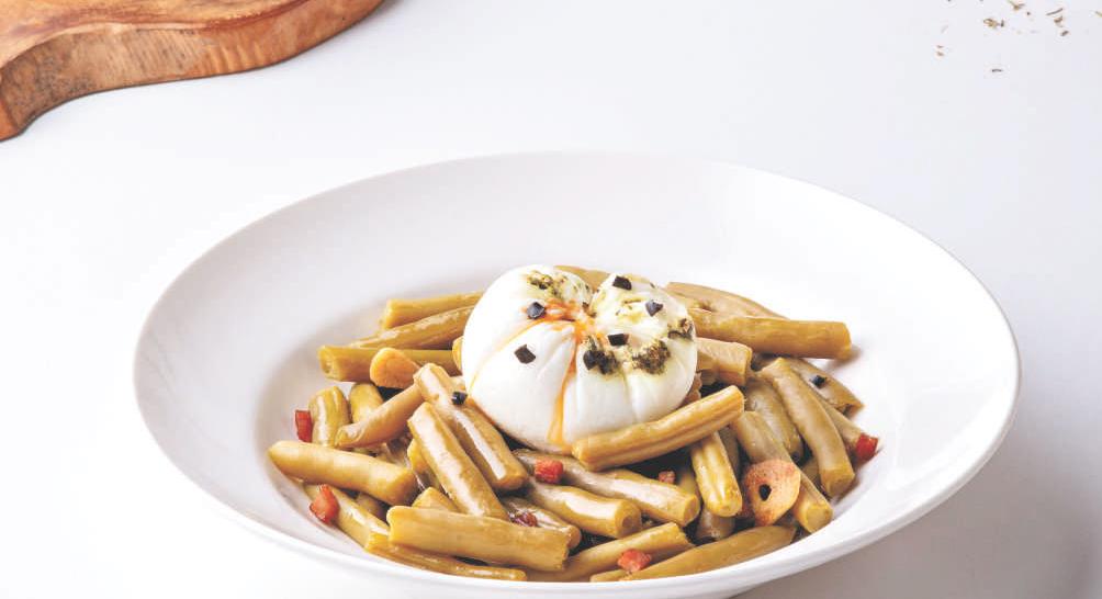 Judías verdes con huevo escalfado
