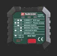 Comprobador de enchufes Indicación mediante tabla de estado con 3 LEDs. Rango de tensiones: 220 - 240 V~ 50 Hz.