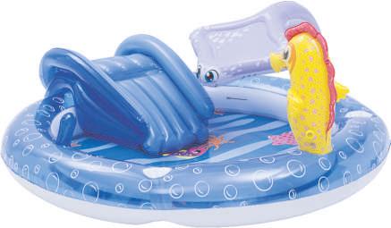 • In cluye: c ojín bl an do p ar a ater r iz ar, sombr il l a c on for m a de p e z y 3 f igur a s acu átic a s c on re c ipiente p ar a el tr ans p or te