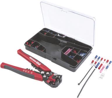 • In cluye: 1 a lic ate p ar a ter mina les de c a ble , sur tido de 6 0 ter mina les de c a ble , 3 0 f un d a s p ar a c one c tores pl anos , 3 0 c one c tores pl anos , 20 pie z a s de unión , 1 0 pie z a s de unión prote gid a s c ontr a chor ro de agu a , 5 0 punt a s ter mina les , 15 br id a s p ar a c a bles de 1 0 mm y 15 a l ambres de 13 0 mm