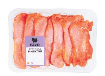 Pechuga de pavo adobad a al ajillo Aprox. 550 g (8 , 9 9 €/kg / 7,6 1 €/kg) -15% 4.94 4.19/aprox. 550 g Oferta válida del 7/8 al 9/8 Aprox. 550 g Chuleta s de pavo al ajillo Aprox. 650 g (6 , 7 9 €/kg / 6 , 39 €/kg) MÁS BARATO 4.41 4.15/aprox. 650 g Oferta válida del 7/8 al 9/8 Aprox. 650 g -22% 3.49 2.69/pack 2 Oferta válida del 7/8 al 9/8 Pack 2 S er r an o® Pechuga de pavo en adobo 380 g (9,1 8 €/kg / 7,0 8 €/kg) Varita s de merluza 450 g (6 ,6 4 €/kg / 5 , 76 €/kg) O c e a n S e a® Raba s empanad a s 500 g (7,1 8 €/kg / 5 , 7 8 €/kg) -19% 3.59 2.89 /ud Oferta válida del 7/8 al 9/8 500 g -13% 2.99 2.59 /ud Oferta válida del 7/8 al 9/8 15 varitas Pechuga de pavo al pimentón Aprox. 550 g (8 ,49 €/kg / 7, 5 4 €/kg) -11% 4.67 4.15/aprox. 550 g Oferta válida del 7/8 al 9/8 Aprox. 550 g