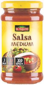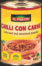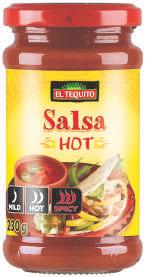 El Te q ui to® Pulpa de aguacate 150 g (9, 2 7 €/kg) El Te q ui to® Sal sa para tacos 215 ml (5 , 53 €/l) El Te q ui to® Sal sa s Dip 300 / 330 g (3 , 97 €/kg) El Te q ui to® Especia s mexicana s 60 / 65 / 90 g (1 9, 83 €/kg / 1 6 , 5 0 €/kg) -16% 1.19 0.99 /ud El Te q ui to® Sal sa de guindill a s cayena s 100 ml ( 1 9, 9 0 €/l) 1.99 /ud 2.49 /ud El Te q ui to® Sopa s mexicana s 400 ml (6 , 2 3 €/l) El Te q ui to® Relleno para fajita s 400 g (6 , 2 3 €/kg) 2.49 /ud El Te q ui to® Tor till a chips 200 g (4, 95 €/kg) El Te q ui to® Tor till a s crujientes para tacos 150 g ( 13 , 2 7 €/kg) 2 VARIEDADES: • Picante • Medio picante Con salsa jalapeño. 99% aguacate. 4 VARIEDADES: • Crema agria • Barbacoa • Picante medio • Muy picante 4 VARIEDADES: • Aguacate y pollo • Chili con carne • Pulled pork • Curry de garbanzos 3 VARIEDADES: • Quesadilla • Chili con carne • Tex Mex 3 VARIEDADES: • Gulasch sopa con verduras • Chili con carne • Verduras con pollo 0.99 /ud 1.19 /ud 1.19 /ud 1.39 /ud 1.99 /ud 12 tortillas F · C/BAL/CEU/ML · 31/2023 9 Desde el jueves 3 de agosto