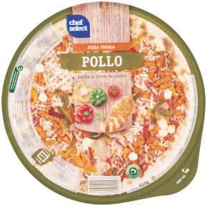 ¡FÁCIL, RÁPIDO Y DELICIOSO! Pizzas frescas cocidas al horno de piedra PIZZAS FRESCAS HASTA -26% Chef S e l ec t ® P izza fresca de atún y bacón 405 g (6 ,6 4 €/kg / 4, 9 1 €/kg) Chef S e l ec t ® P izza fresca de jamón y queso 405 g (5 , 9 0 €/kg / 4, 5 7 €/kg) Chef S e l ec t ® P izza fresca de barbacoa 440 g (5 ,6 6 €/kg / 4, 89 €/kg) -26% 2.69 1.99 /ud Oferta válida del 7/8 al 9/8 -22% 2.39 1.85 /ud Oferta válida del 7/8 al 9/8 -13% 2.49 2.15 /ud Oferta válida del 7/8 al 9/8 Chef S e l ec t ® P izza fresca de pepperoni 410 g (6 , 5 6 €/kg / 4, 85 €/kg) Chef S e l ec t ® P izza fresca de 4 quesos 410 g (6 , 5 6 €/kg / 5 , 24 €/kg) -26% 2.69 1.99 /ud Oferta válida del 7/8 al 9/8 -20% 2.69 2.15 /ud Oferta válida del 7/8 al 9/8 Chef S e l ec t ® P izza fresca de pollo 410 g (6 , 32 €/kg / 5 ,- €/kg) -20% 2.59 2.05 /ud Oferta válida del 7/8 al 9/8 Nuevo ¡Pruébalo! F · C/BAL/CEU/ML · 31/2023 16 Desde el lunes 7 de agosto