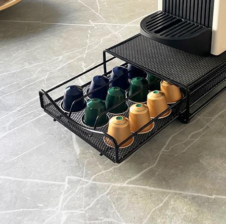 2 en 1: base antideslizante para máquinas de café y cajón organizador de cápsulas.
