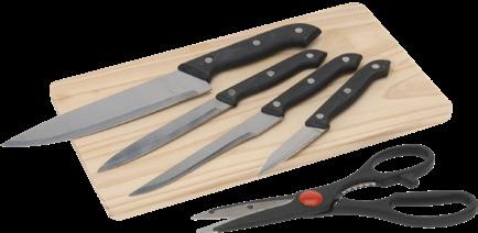 INCLUYE: 1 TABLAR DE CORTAR, 4 CUCHILLOS, 1 TIJERA