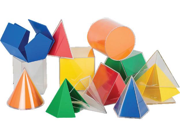Learn about the exciting world of shapes in their 2D & 3D forms. Explore 2D shapes & 3D solids, their properties & relationships, area & perimeter, surface area, capacity & volume with this 20 piece set. The 10 colourful 2D folding nets are made from soft & durable plastic. The transparent plastic 3D solids with removable 10 cm bases include square prism/ cube, cone, cylinder, square pyramid, triangular pyramid, pentagonal pyramid, hexagonal pyramid, triangular prism, pentagonal prism, hexagonal prism. Use for class and individual instruction as well as after-school programs. Activity guide included. Age 8+.