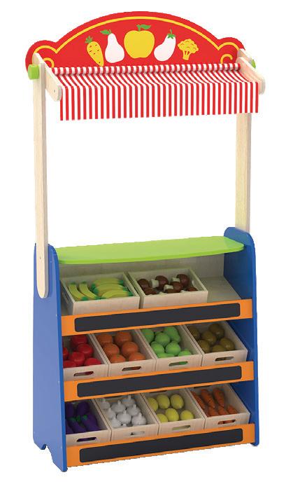 When children play the theatre, the curtain can be rolled up & the topic of the story can be written on the blackboard. Turn the frame around & roll up the curtain for the grocery store. The blackboard can also be used to write products & prices for the grocery store. Age 3+.
