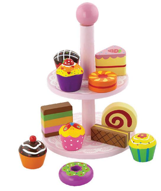 Two tiers of delicious-looking wooden tea time treat on this cake stand. Ideal for creative role play sessions & to introduce the concepts of choice, taste & sharing.