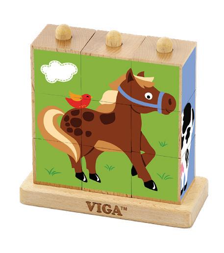 Beautifully crafted wooden puzzle features 9 wooden cubes & a baseplate with 3 vertical rods, made of quality beech wood. Children can easily build 4 pictures by stacking the 9 blocks, in assorted variations, on the vertical rods.