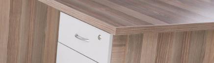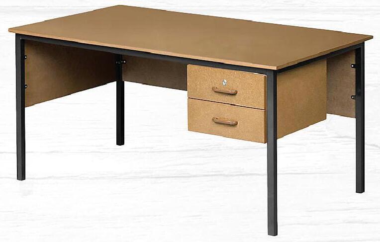 16mm Supawood or oak melamine top with powder coated steel frame & 2 drawer pedestal with top lock.