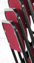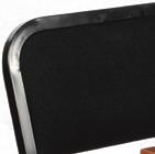 Stackable upholstered fullback chair with powder coated steel frame. •