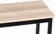 22mm Saligna or 16mm Supawood tops with pencil groove. Powder coated steel frame. Stackable.