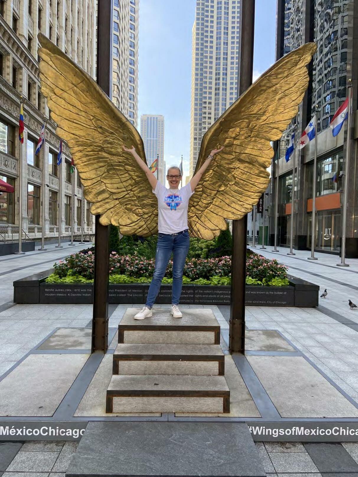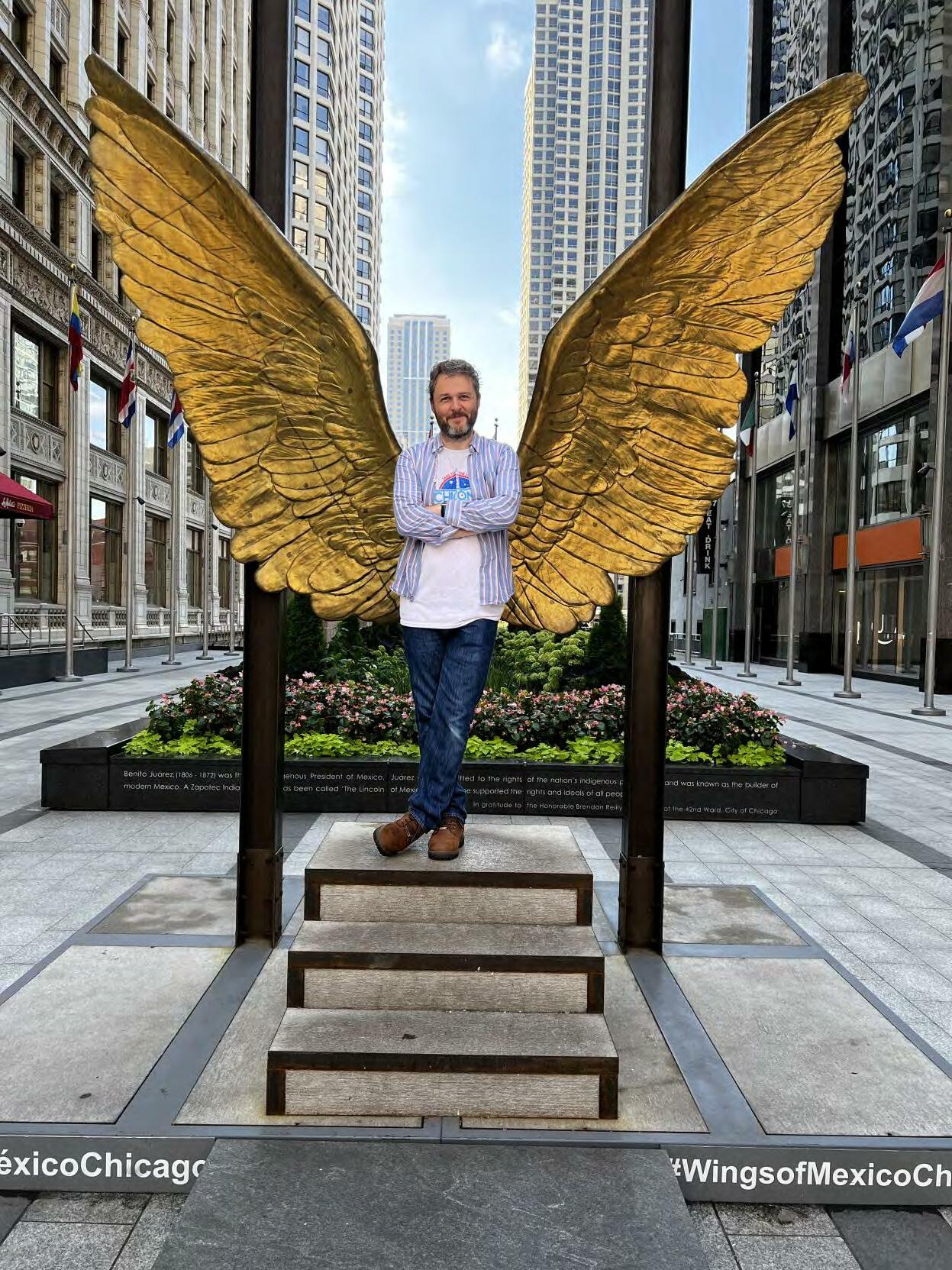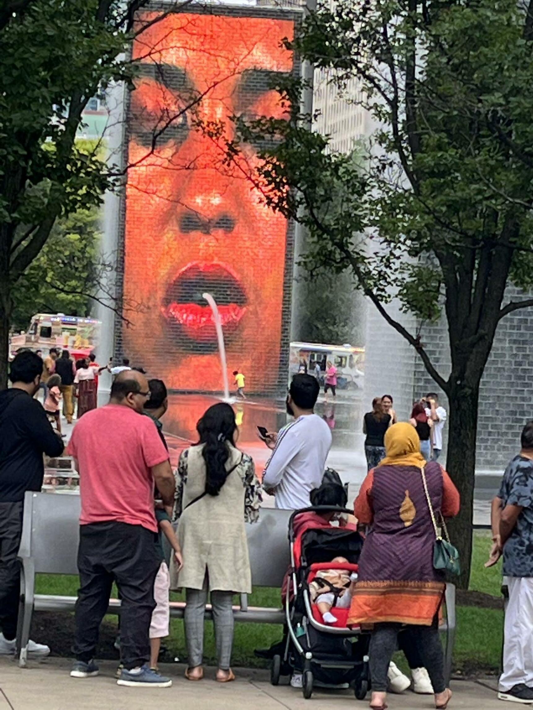 We headed up to the room and got some sleep before Monday, when we had to break down Vanessa’s art display. After that bit of packing fun, including getting a bit of time with the magnificent Meg Frank, we went for a walk and grabbed lunch. James was supposed to have joined us, but there was a brouhaha with Glasgow (the winner of the 2024 Worldcon) that kept him away. We chose a place in Millennium Park, right beneath the bean, and I had a phenomenal burger! We got more shots of the Bean, which Vanessa hadn’t seen, and a couple of other pieces we came across. We headed back to the hotel and got some rest. We ended up back in the room early and I just conked out. Vanessa went over her sales and the total for her first art show 1800 bucks. That paid for the room at least (and I think the whole trip is a write off now???)