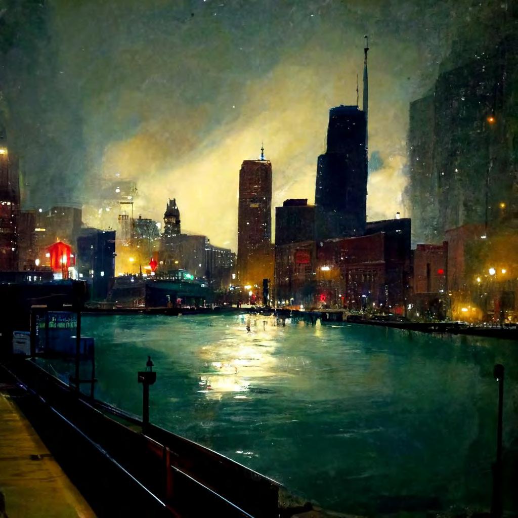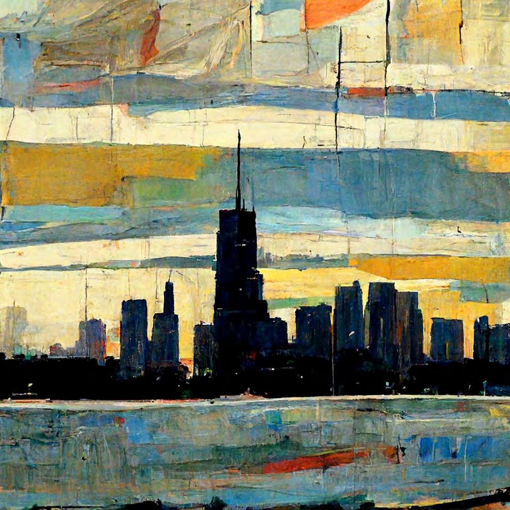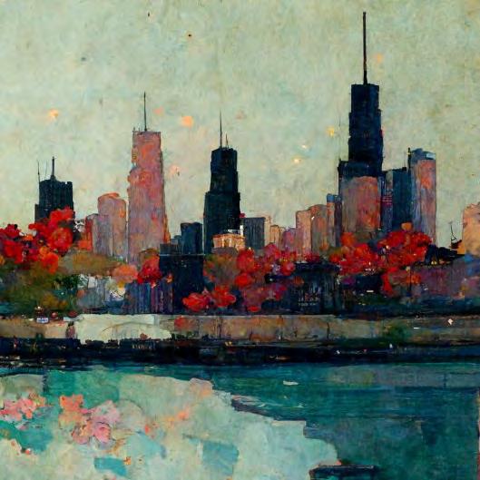 Page 40, 42 Chris using Midjourney (prompt: Chicago skyline late impressionist)