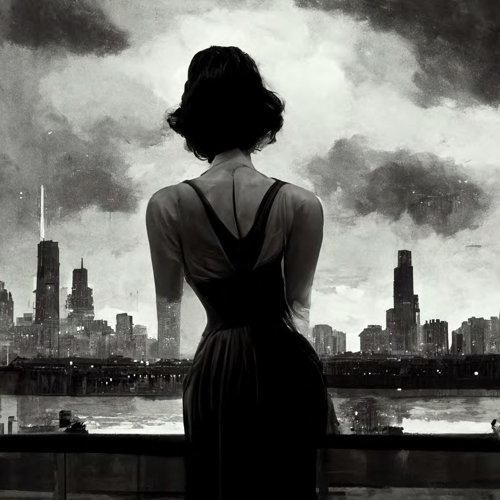 Page 84 Chris using Midjourney (prompt: Femme Fatale watching Chicago)