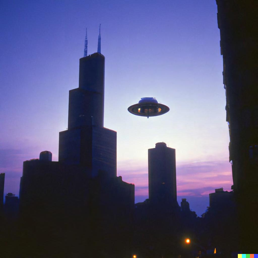 Page 3 Chris using DALL*E 2 (Prompt: A UFO over Chicago)