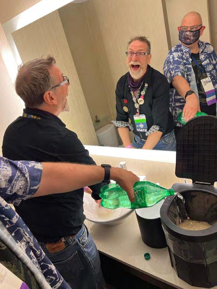 I left the suite 12 hours later with a request that perhaps I could help make some Pimm’s Cup from time to time. The times were every Worldcon after that at the various London bid parties, and by Renovation a few years later it had reached frankly ludicrous proportions where, as I quipped, I had made north of 50 gallons of Pimm’s in two nights, in the toilet.
