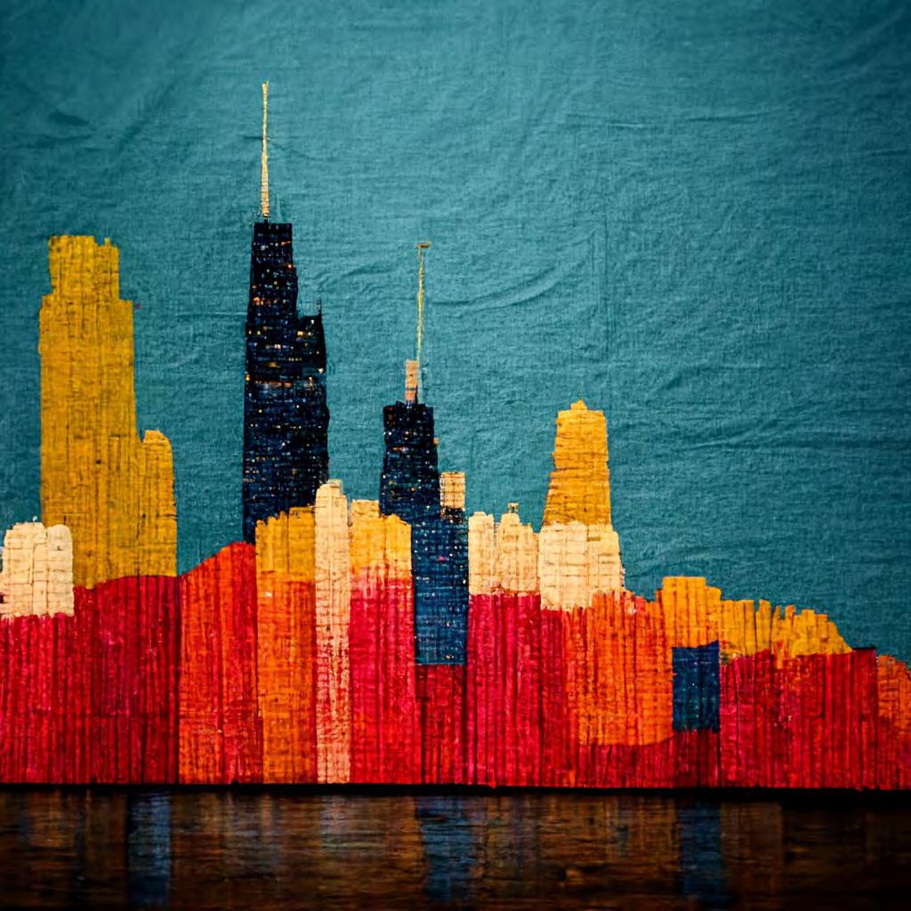 Page 48 Chris using Midjourney (prompt: Chicago Skyline fibre