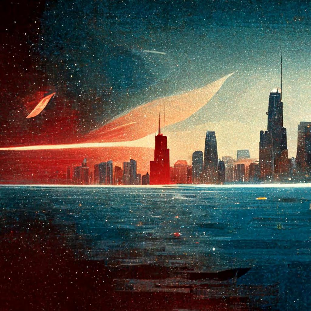 Cover Chris using DALL*E 2 (prompt: Futuristic Chicago Skyline)