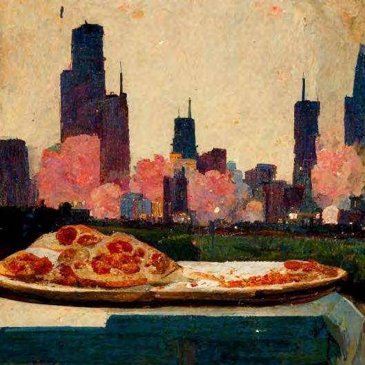 Page 51—Chris using Midjourney (prompt: impressionistic Chicago with deep dish pizza)