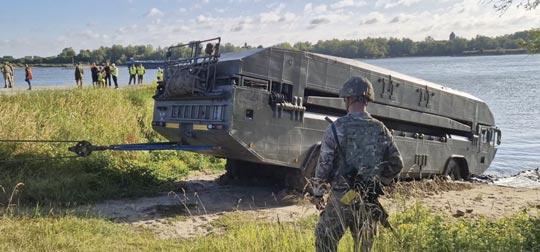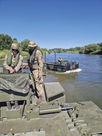 Thanks to our dedication and skill, the M3 rigs remained fully missioncapable throughout the exercise. Their successful deployment enabled seamless ferry operations across the Rhine and the construction of a bridge over the Weser at Hameln. The final crossing, facilitated by an Italian bridge unit, marked the culmination of the exercise at the Minden Water Training Area.