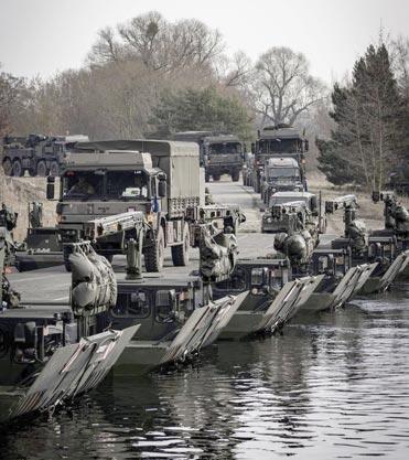 length, in as little as 30 minutes. Alternatively, a 4-rig ferry, capable of transporting vehicles, personnel and cargo across a water gap, can be operational in just 10 to 15 minutes.