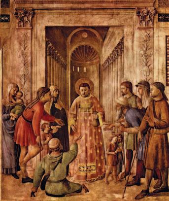 SAINT LAURENT FAIT L’AUMÔNE AUX PAUVRES, PAR FRA ANGELICO, XVe