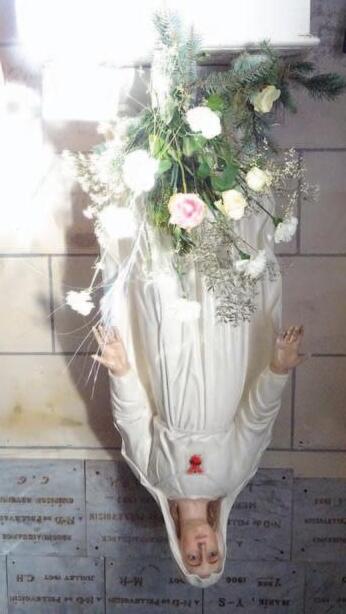 STATUES DU SACRÉCŒUR ET DE NOTREDAME DE PELLEVOISIN AU SANCTUAIRE.