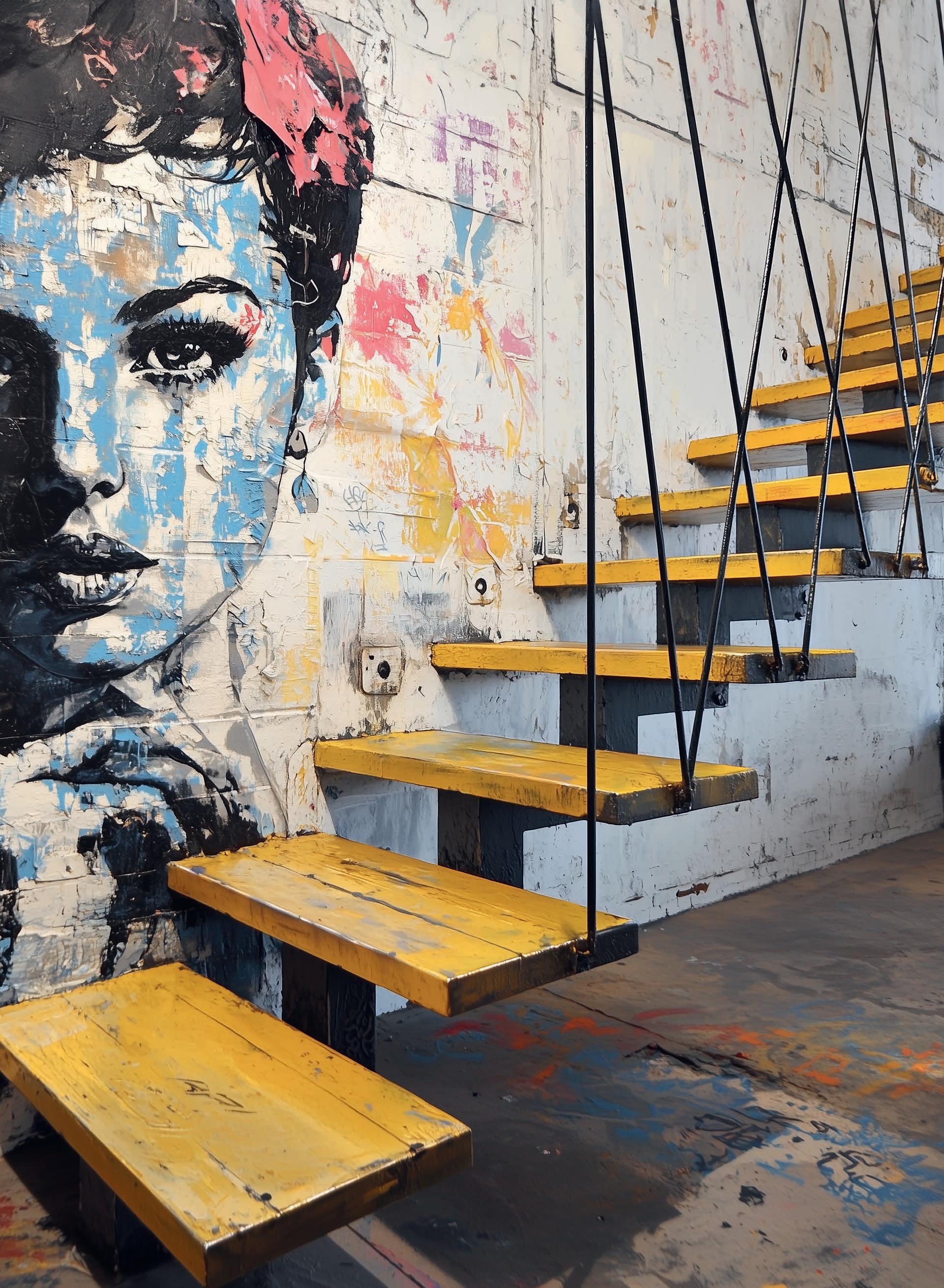 Si Zailfana excelle dans son atelier, elle se révèle tout autant en artiste urbaine sur les murs de La Roche-sur-Yon. Deux manières de travailler qui se rejoignent, malgré quelques évidentes différences. « Le travail sur toile m’aide beaucoup pour ce que je fais sur les murs : je sais par où commencer, je sais quand il faut travailler les ombres, la lumière. » Son approche des fresques témoigne d’un esprit libre et généreux. « Il m’arrive parfois de passer devant un mur vierge, alors je toque à la porte du propriétaire et je demande simplement s’il est d’accord pour me laisser y créer quelque chose. »