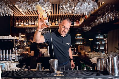 A l’étage, le Bar +1 se veut le lieu des afterworks et des plaisirs nocturnes. Après avoir grimpé le splendide escalier aux murs ornés de tableaux, on pénètre dans une grande salle vermillon à l’ambiance feutrée, et on s’installe au comptoir, autour de petites tables, ou dans des canapés design. Aux beaux jours, on peut aussi prendre place sur la terrasse surplombant le jardin, face au panorama arboré. « Au Bar +1, c’est l’expérience cocktail qui prime, entre grands classiques et créations originales. » Le tout augmenté