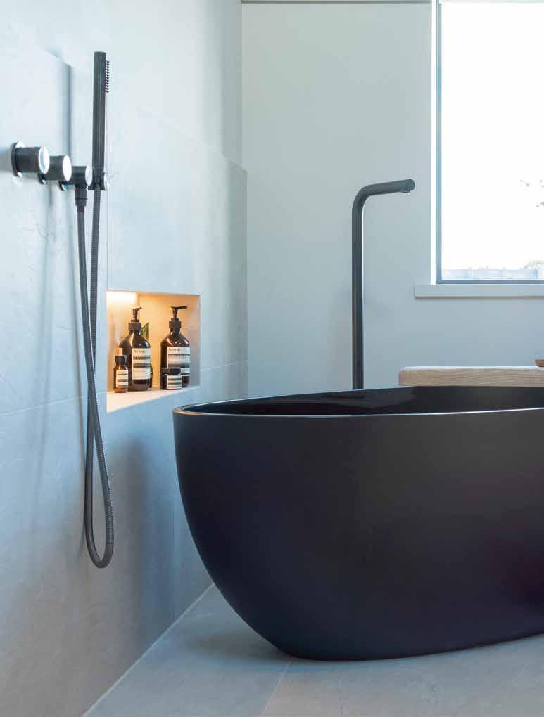 IF YOU’RE CHOOSING PAINT COLOURS AND FABRICS, GET AS MANY SAMPLES AS YOU CAN AND KEEP THEMAbove: Livello Matte Black Pull Out Kitchen Mixer Tap Top right: Panda Marble Designo Countertop Basin 550mm / Luxe Matte Black Wall Mounted Basin Mixer Tap V1 Matte Black 3 Way Thermostatic Shower with Handheld Shower & Bath Spout
