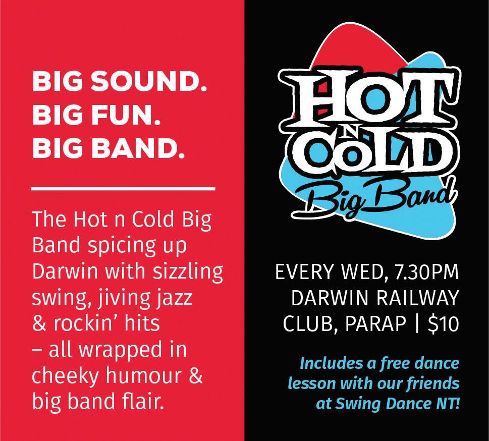 Experience this 18-piece sensation, live on stage. Entertaining Darwin audiences every week since 2009, these cats are cool. Entry includes a dance lesson with Swing Dance NT – a sure way to impress your friends.