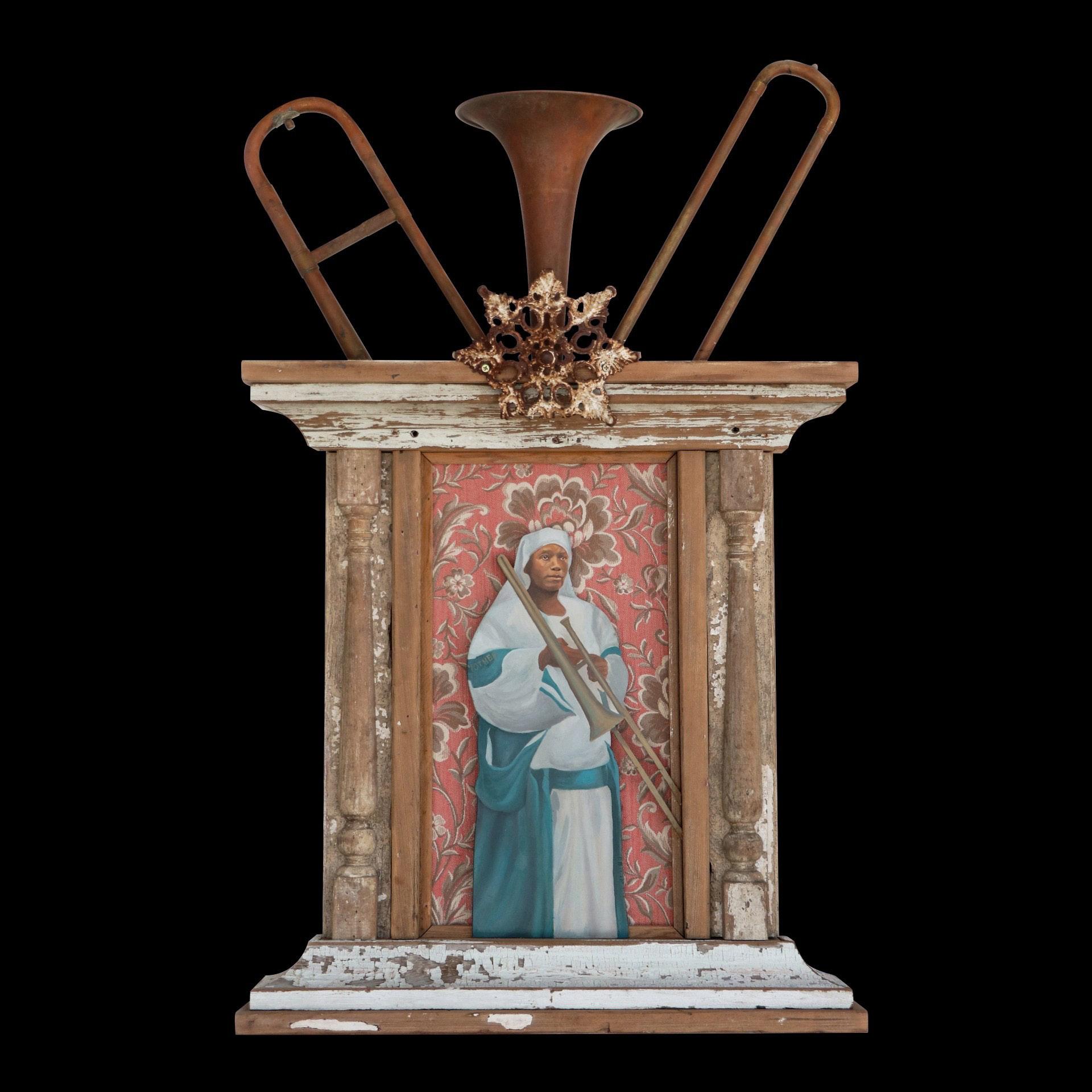The artworks exhibited here instill the same sense of greatness and poetry through the lyrical ways that they convey the breathtaking essence of this place and its people: the revelatory paintings divulge the face and feeling of the region’s landscape and natural setting, the nuanced photographs of the multitudes of individuals and communities disclose the range of emotions and encounters they experience every day, and the multi-media works extrapolate the historic power and sense of tradition that undergirds the area’s heritage while also serving as building blocks for growth and a hopeful tomorrow. Whether figurative or abstract, all of these components are translated to something that communicates resilience and universal creative inclusion. I see every one of the artworks here as emblematic of the Adjuah’s evocation of the state and its aura – a place and feeling unlike any other – perfectly communicated in the trumpeter’s welcoming, shouting blasts, the piano’s driving, embracing melody and the rhythmic percussion’s invitation for us to step together in time.