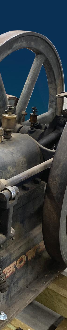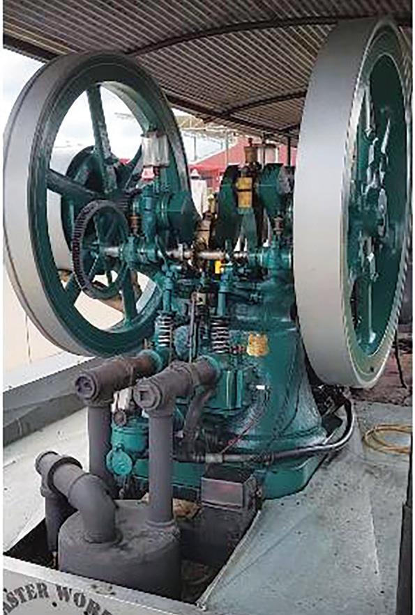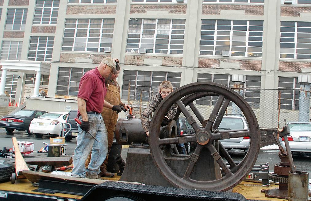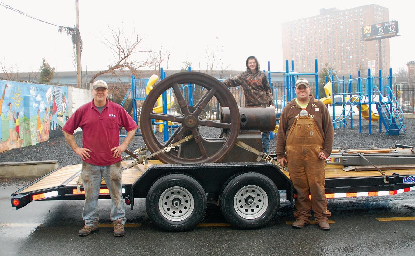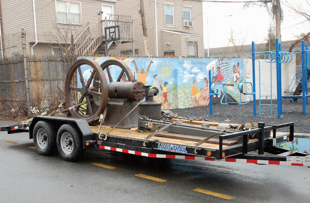 photos of the building, the steps, the corners, and the doors the engine would have to be hauled through, up, around, and out to get the engine to ground level. After several phone calls back and forth with questions about the building and specifics on the engine, Tim mentioned all the brass was stolen when the building sat empty in the 1990s. With no identification, I wasn’t sure what size the engine was. With Tim’s measurements and my research, I was pretty sure it was a 12 to 14hp old-style Backus.