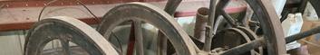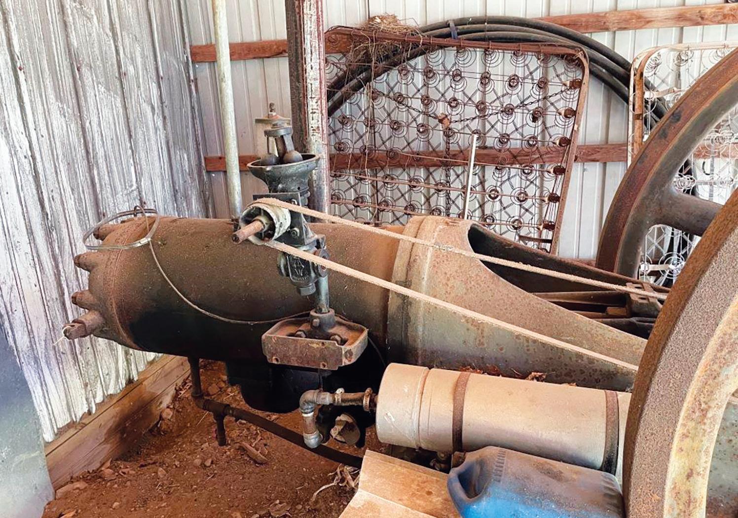The Backus sits in Ed’s small museum in Carleton, Michigan. The Backus flywheels sit higher than any of the other engines in the barn.