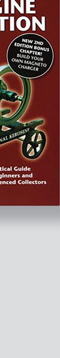 Restoration Techniques and Tips for Beginners and Experts Dig into GasEngineRestoration, the detailed, step-by-step guide to stationary gas engine restoration, and work on your antiques today! From start to nish, veteran vintage engine restorer Peter Rooke’s easy-tofollow narrative will impress and educate new and experienced hobbyists with an exhaustive coverage of the process. AND — get the second book, More GasEngineRestoration, for when you’ve torn through the rst! A follow-up to his highly regarded rst book, this guide features chapters dedicated to helping ensure your engine runs at its best, while chapters on making muf ers, repairing cast iron, and learning how to paint and pinstripe show you how to get your engine looking its best. This title is available at www.Store.GasEngineMagazine. com or by calling 800-8889098. Mention promo code MGEPANZ5. Item #9975.