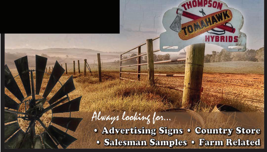 Like to buy any type of old farm equipment, one piece or whole collection, salesman samples, country store, corn shellers, anything farm related, advertising signs, old wood signs. Leave message 574-304-4587