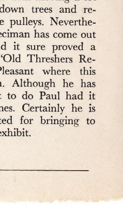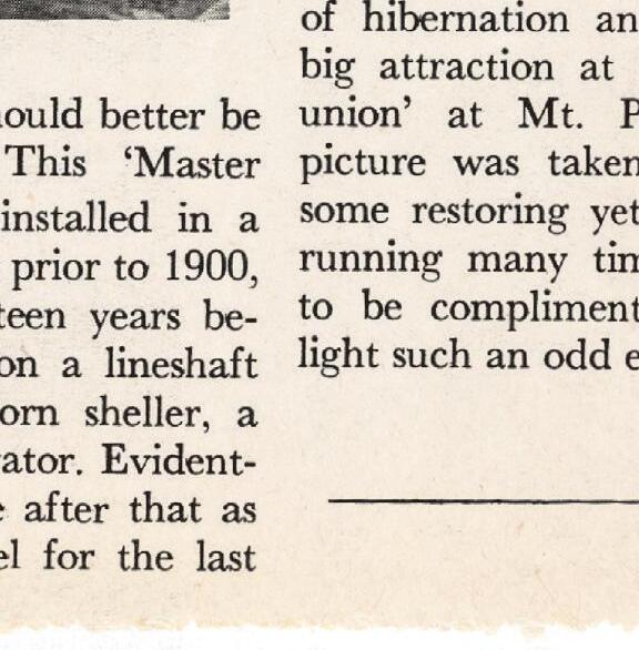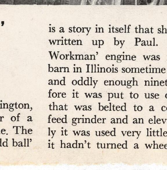 I have a rare and unusual treat in this issue, an update on a formerly featured youngster collector, now an experienced and well-aged gentleman by the name of Paul Gorrell. Paul and his Master Workman engine acquisition were originally printed in black and white on the pages of … drum roll please … the very rst issue of Gas Engine Magazine!