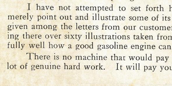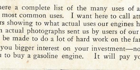 The catalog is, of course, complete with an order blank and list of engine specs and costs, starting as low as $59.50 (cash price) for a 2hp stationary and climbing as high as $643.50 for a 22hp portable (half cash/half note).