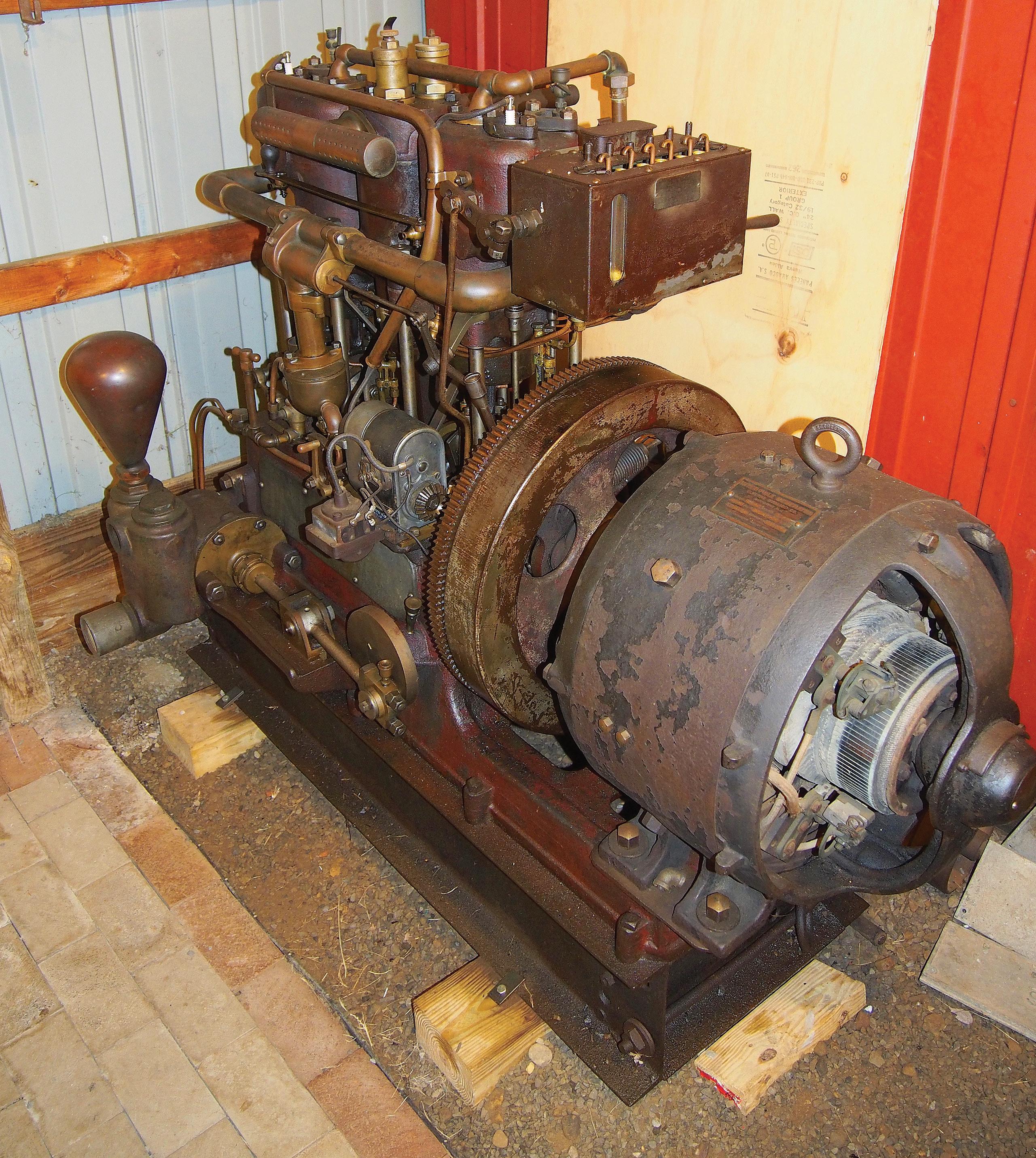 The engine supplied all of the auxiliary services on World War I submarine chasers; this particular engine served as the source of electrical power, as an air compressor, and as a combined bilge and fire pump. All parts were readily interchangeable so that spares could be carried and the chaser engines easily maintained at sea.