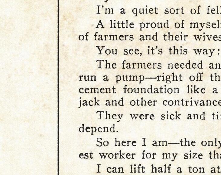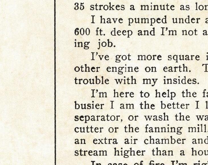 Historical pieces — If you are interested in the backstory of a speci c company, spend some time digging up the details and send the story my way. Include antique advertisements, catalogs, owner’s manuals, or photos of the engine/creator.