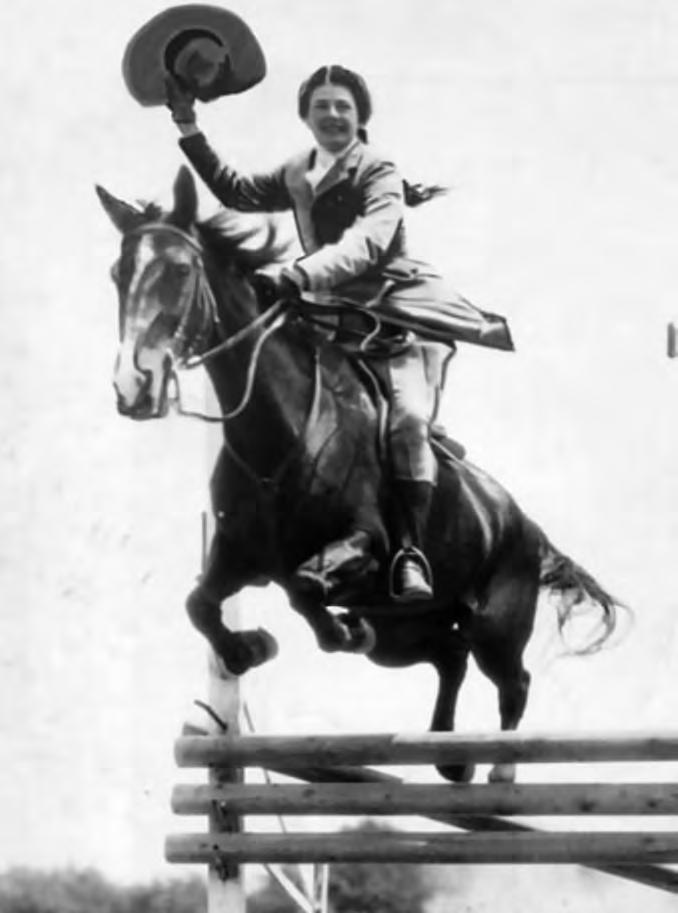 Parker performing a jump over a high bar on her ranch ca. 1930. She was 44 years old. Photo Courtesy of Cleveland State University, Michael Schwartz Library, Special Collections