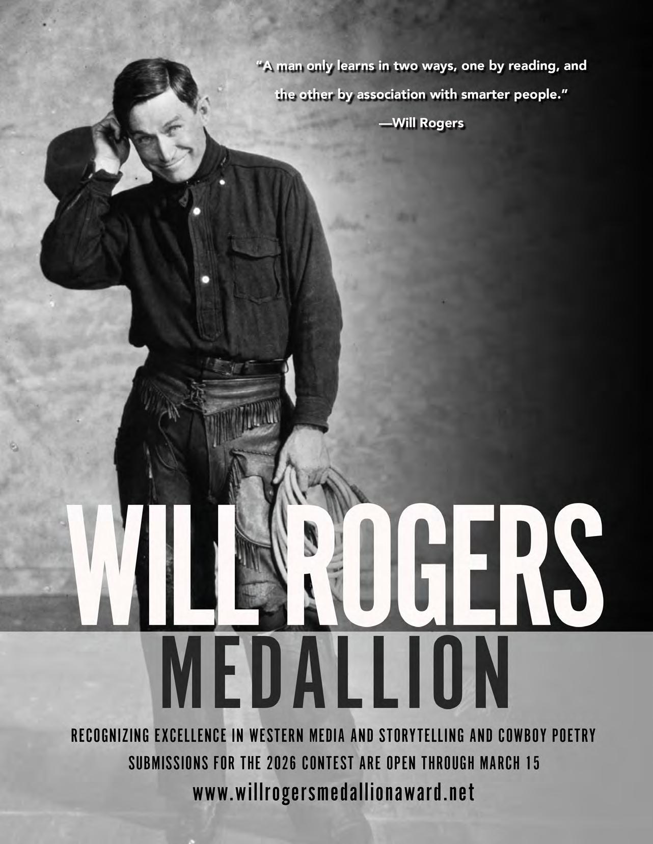 Staying with contests, the annual Will Rogers Medallion Awards were held the fnal weekend of October in Claremore, Oklahoma. These awards honor excellence in Western literature, poetry, music, and flm. We were pleased as punch to see so many of our staf members and contributors recognized.