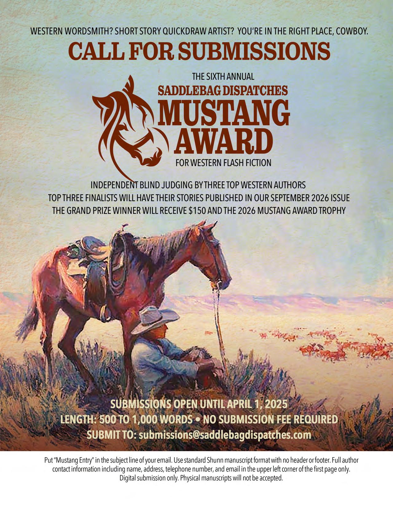 Howdy, partner! Welcome to the newest issue of Saddlebag Dispatches, where the West still rides tall. This year we’re shifting our publishing schedule from December to January, May, and September, giving our contributors more time to polish their best work—and more chances to win the recognition they deserve. Three outstanding issues, same grit, same adventure, and a tip of the hat to the authors who helped us make this improvement.