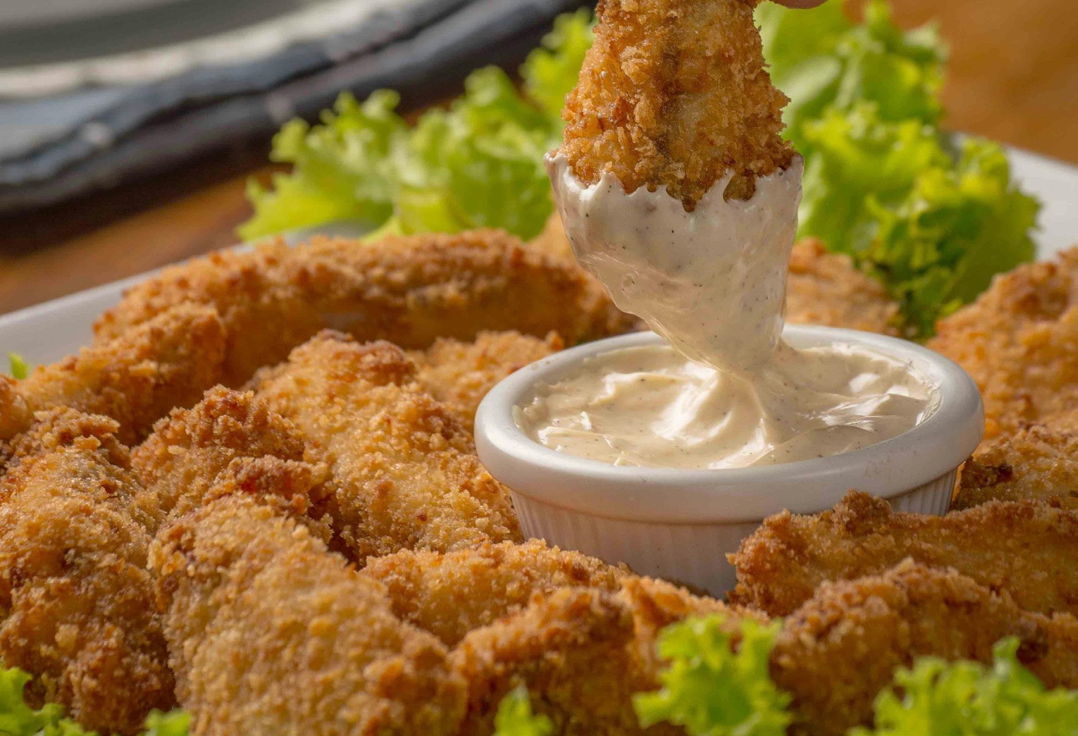 In batches, cook chicken 5 to 6 minutes on each side until the chicken is cooked through and crispy golden on the outside.