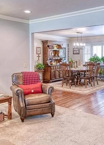 Nestled in The Harbors, one of Grady County’s most desirable neighborhoods, this 4 bedroom, 2.5-bath home offers 3,649 square feet of spacious, welldesigned living with room to grow, including potential for additional bedrooms and even a future bath upstairs. Built in 2001 and meticulously maintained, it features new flooring, stainless steel appliances, a built-in oven and dishwasher, and a brand-new HVAC system. The grand entryway and sweeping staircase make a striking first impression, while formal dining and sitting areas add timeless elegance. Downstairs, a game room houses a 20-foot, 380-gallon fish tank, and upstairs, a second oversized game room offers endless flexibility.