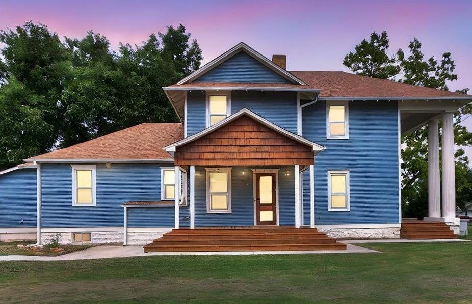 This stunning early-1900s home has been thoughtfully restored to preserve its timeless charm while adding modern updates like new plumbing, electrical, windows, and tank-less water heater. From the restored pine floors and grand staircase to the striking fireplace, updated kitchen, luxurious primary suite, and incomeproducing guest home, this Chickasha gem beautifully blends history, and comfort.
